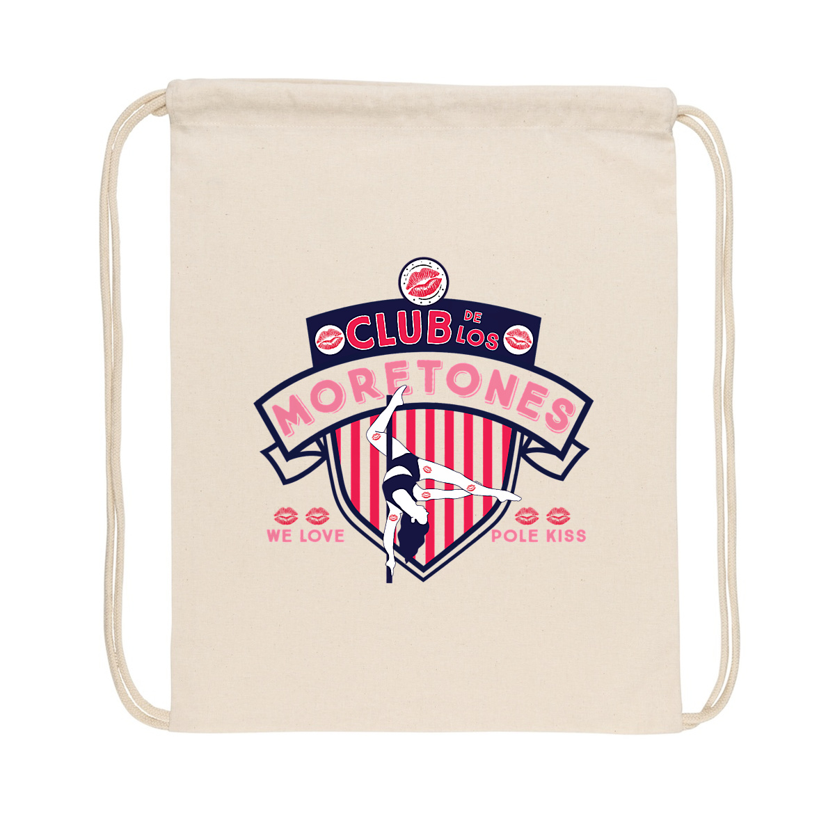 The “Club de los Moretones – We Love Pole Kisses” Drawstring Bag is lightweight, durable, and the perfect companion for training, workshops, or just showing off your pole pride. A cheeky nod to the bruises we collect – and the community we love.