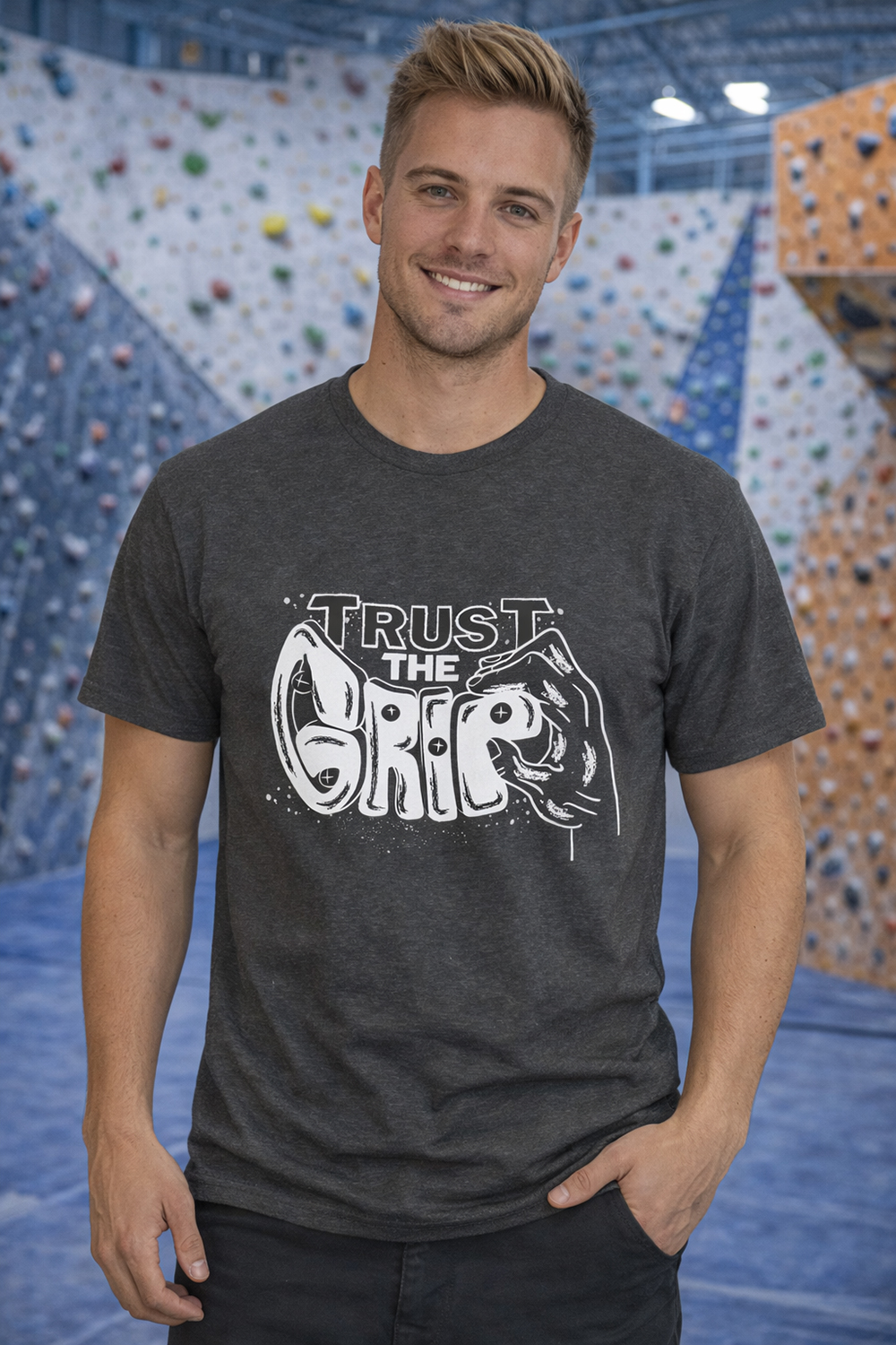 Camiseta escalada unisex trust the grip dark heather