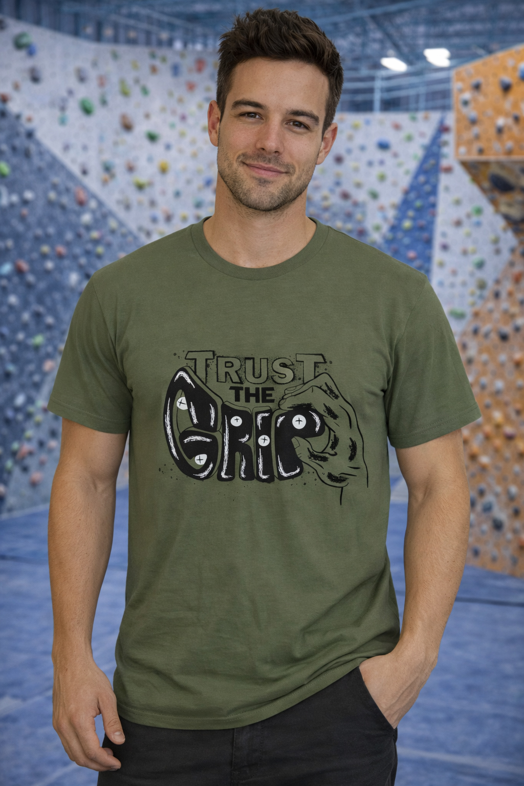 Camiseta escalada unisex trust the grip military