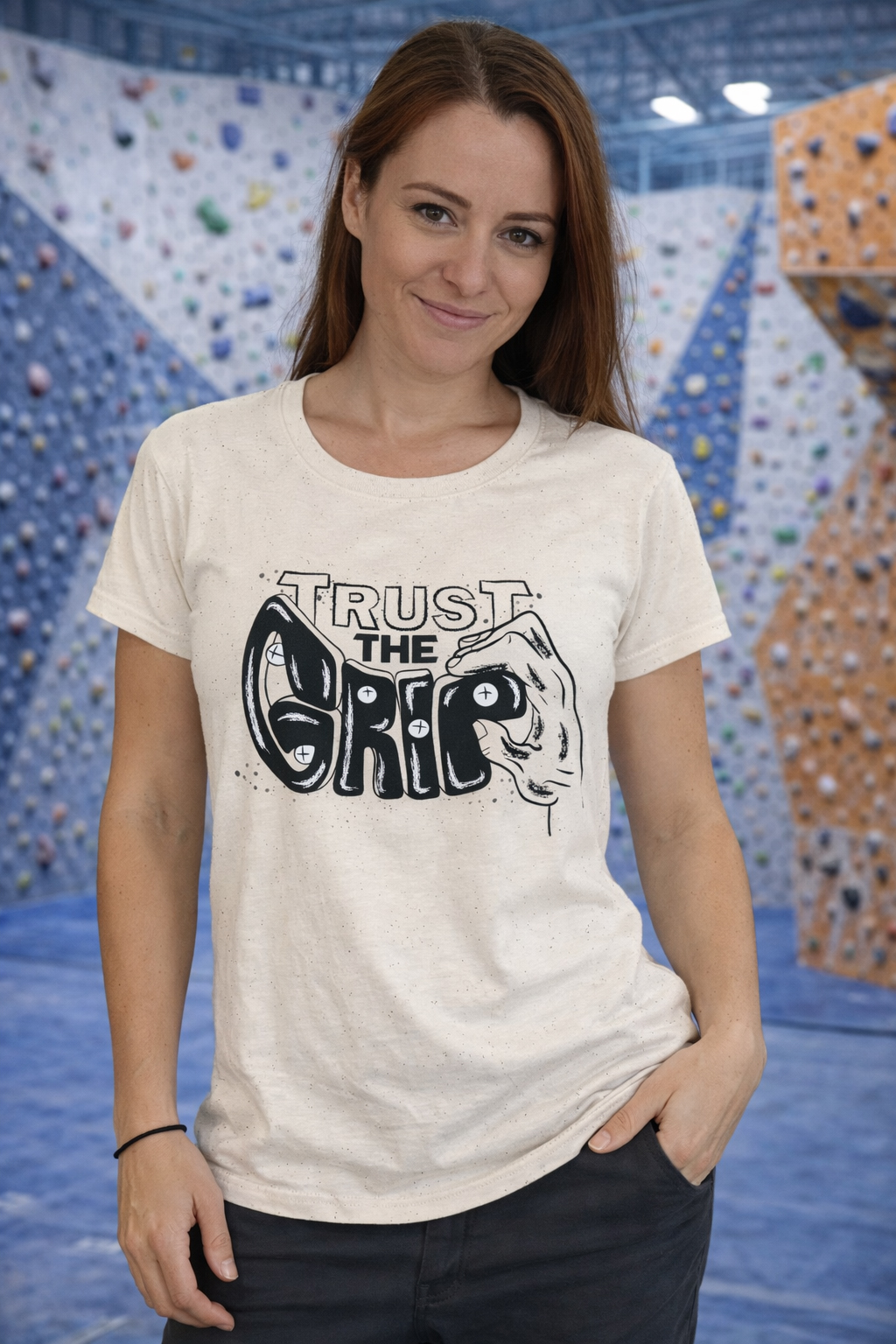 Camiseta escalada unisex trust the grip natural